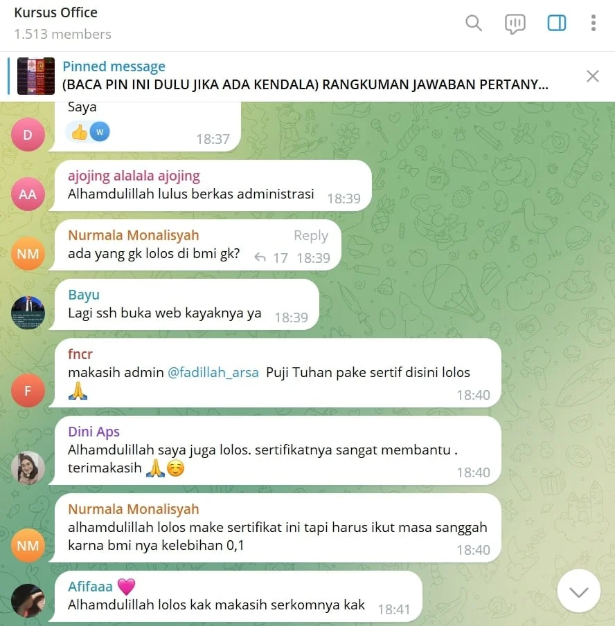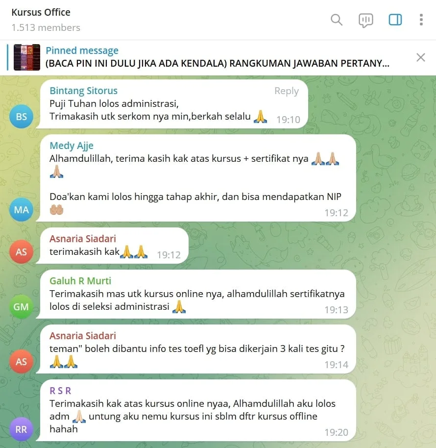 Makasih y K.. benerβ udah akhir pnutupan pndaftaran cpns msh cari tmpat kursus, akhirnya nemu ini.. Cpt bnget lg kluar sertifikatnya.. Aku lolos adm akak.. ππππ
