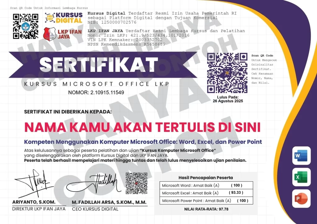 Kursus Online Microsoft Office Bersertifikat Resmi LKP Ifan Jaya